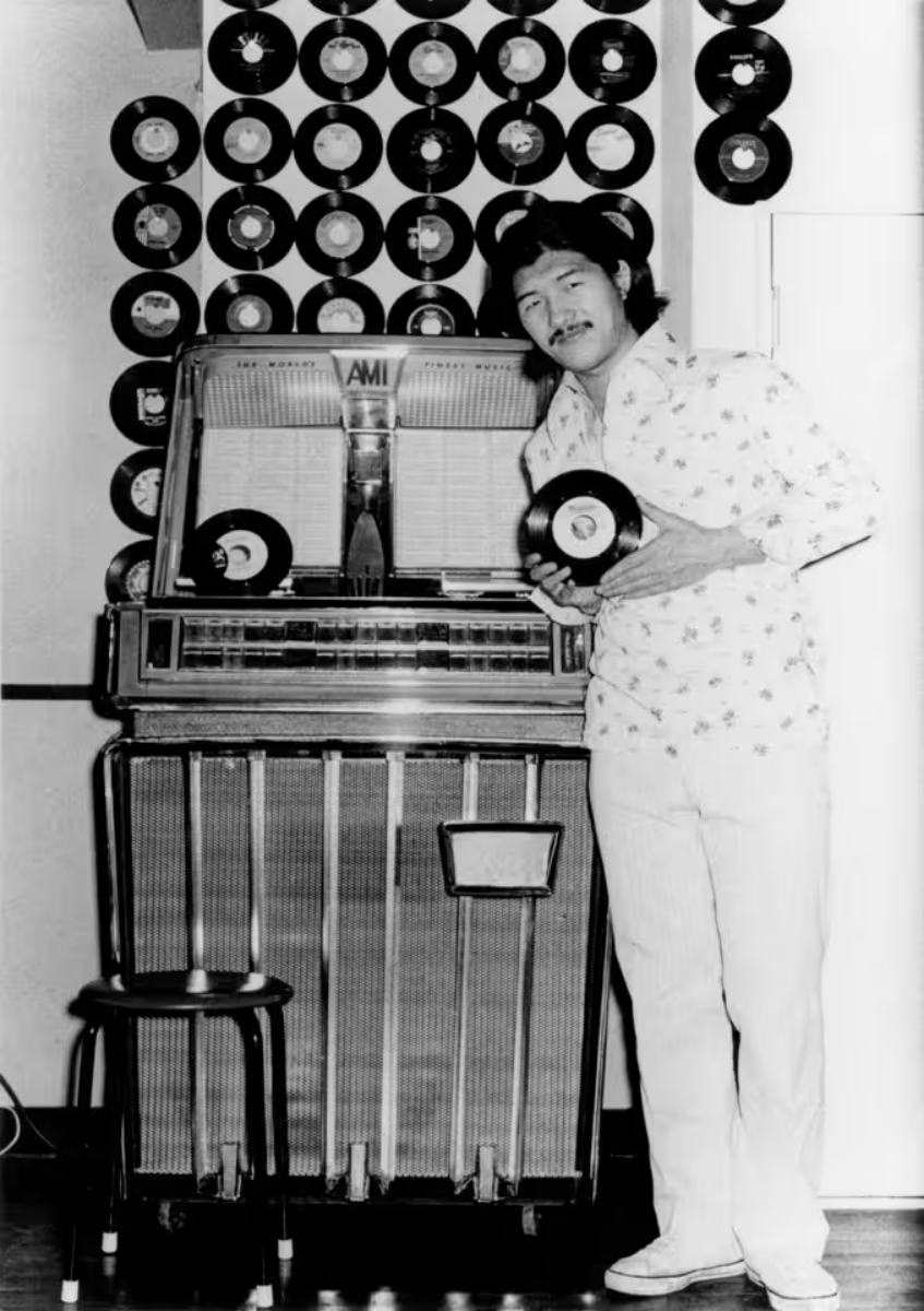 左上:ジュークボックスと一緒にポーズをとるレイ・ディヴィス(キンクス)(1984)