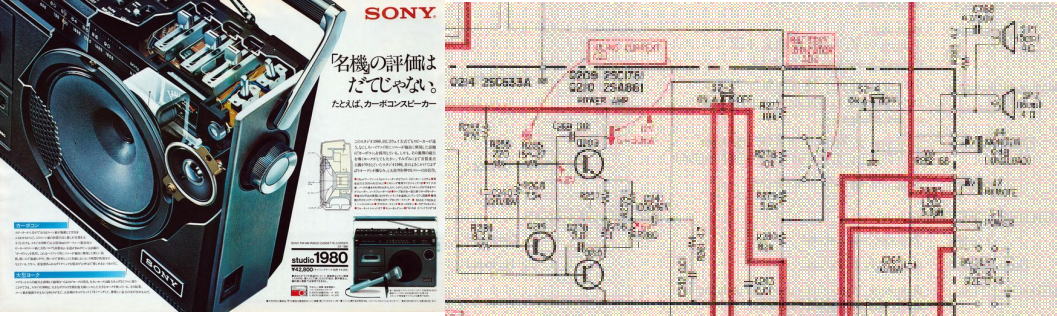 もうひとつは、トランス結合B級プッシュプル回路で、トランジスタがラジオに実装された初期から1970年代前半まで、家電製品の主流だった。現在、このラジオ用トランスを昭和30年代から変わらず製造しているのがサンスイトランスで、事業を引き継いだ橋本トランスが製造販売している。私が気に入ったのはST-17Aというトランスで、少しカマボコ型なのだが、艶のある中域とMMカートリッジのような太い音が魅力だ。1970年代末にラジカセにもパワーICが実装されるようになったが、わざわざITL-OTL回路(インプット&アウトプット・トランス・レス)と宣伝しているところをみると、まだまだB級回路を搭載した家電の多かったことを物語っている。