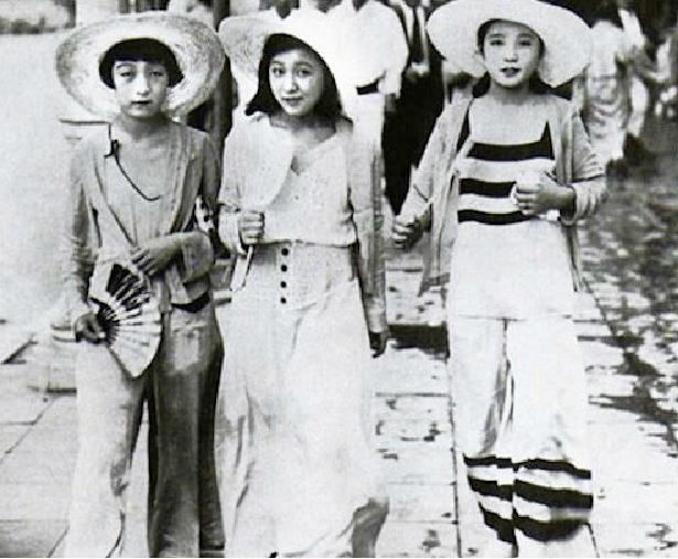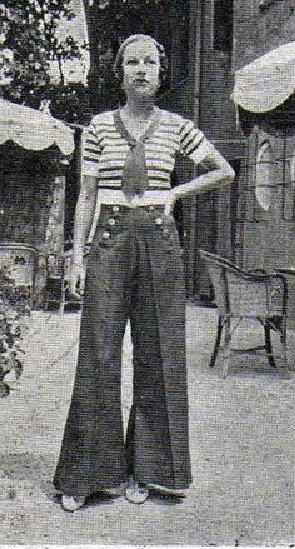 ではモボの紳士服はこれで打ち止めかというと、例えば、ニッカーポッカーズ(裾をブーツの中にくるんで腿を膨らませたズボン)は、イギリスで乗馬、狩猟、ゴルフなどアウトドアのスポーツで着用するカントリースーツから派生したが、国境を巡って主戦場が野戦となることの多かった軍服としてもトレンドだった。このブカブカのズボンは、モボたちの間ではセーラーズボン(「おいらは村中で一番~モボだと言われた男!」で有名な洒落男に出てくる)と呼ばれ、海兵隊が着ていたズボンを差している。いわゆるパンタロンに近いラッパ型のズボンだったのだが、オックスフォード大の学生たちの間では裾の広さを争う風に流行っていて、やがて女性のジャンパースカートに解消されていった。こうしたドレスコードを免脱したファッションについて、アメトラ&アイビー好きの間ではあまり好まれないのは、洒落男の悪い見本と思っているのと、1930年代の風変わりな風景を理解できないからだろう。