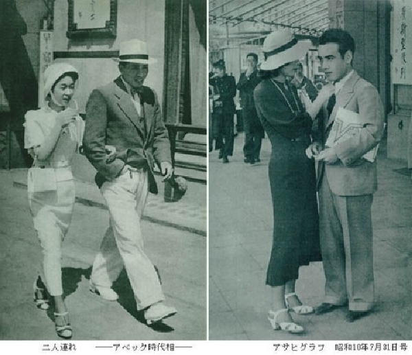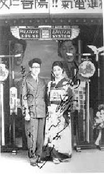 浅草電気館の前の東海林太郎と山路ふみ子(1935年WE製のトーキー配備)