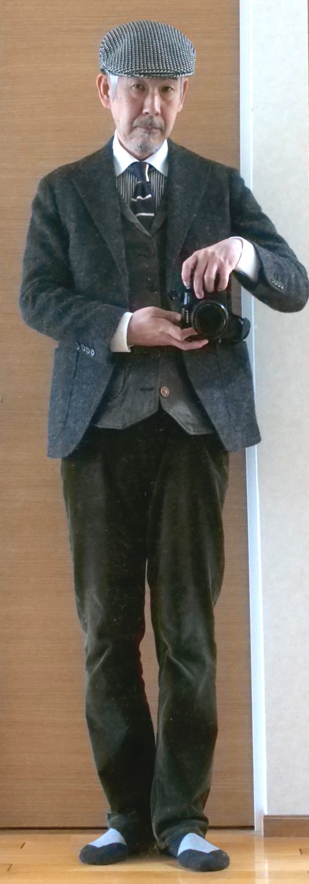 ある日、保険屋のおばちゃんと契約変更の打合せを自宅でやったとき、寝巻姿だとあまりに失礼なので、ネクタイとジレを着て対応したら、「めかし込んでどうしたんですか?」「これから昼食に出かけるのでついでに着替えたんです」「どの行き着けの店?」「近所のスパゲッティ屋ですが」「???(会話終了)」という具合で、何というか妻に内緒で時化込もうという勘ぐりまで与える異常事態に陥っていたらしい。でもこれだけ気張った色付けでも、老人が着るとシックに落ち着くし、まだまだレイヤードできそうな感じもある。やはりこれは先人の遺した当代一流のコスプレ衣装なのだ。