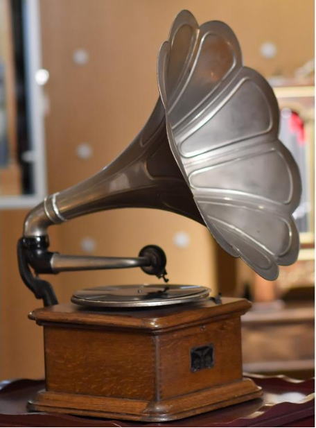 巨大なホーンをもつEMG X型蓄音機(1929~34)