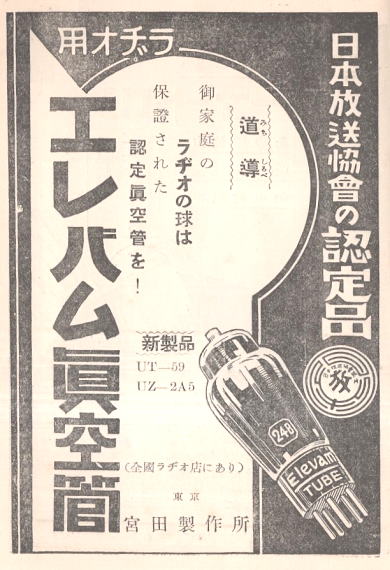 エレバム真空管の広告(1935):民放はまだなく時代は5極管に移行