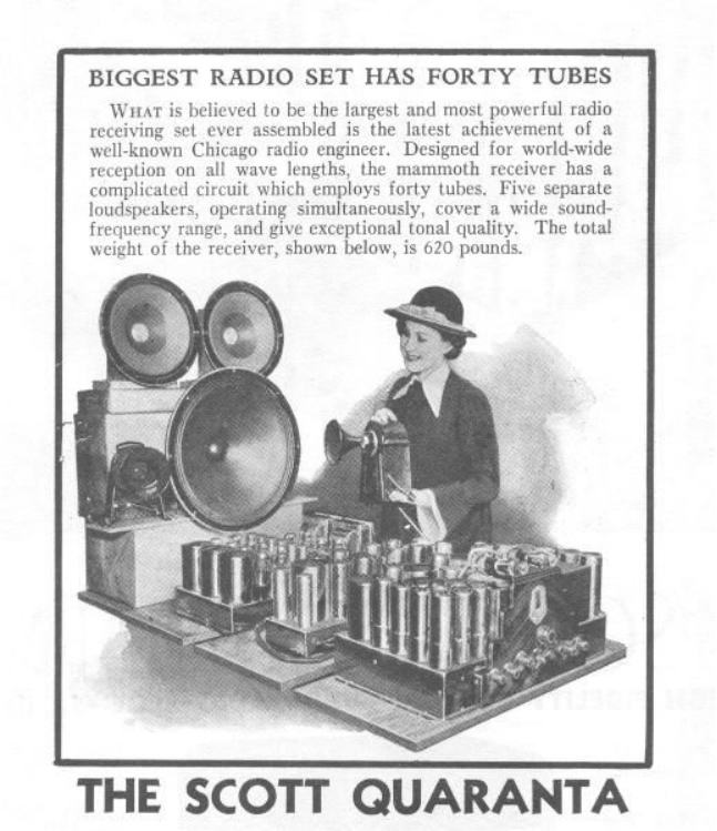このように、アールデコ=蓄音機というのは、ある種の郷愁のようなものであり、1930年代はラジオやトーキー映画という電気拡声機器が、この時代の特徴でもあったのだ。それも極初期の電話の音声と変わりない未発達な鉱石ラジオやマグネチックスピーカーのような類ではなく、現在でもほぼ同じ仕様のアンプとマルチウェイスピーカーをもつHi-Fiオーディオ機器が、実験レベルを越えて普通に存在していたのだ。そうでないように思えるのは、LPやステレオを売り込む際にネガティブキャンペーンによって、それが一般論にまで発展しているからである。