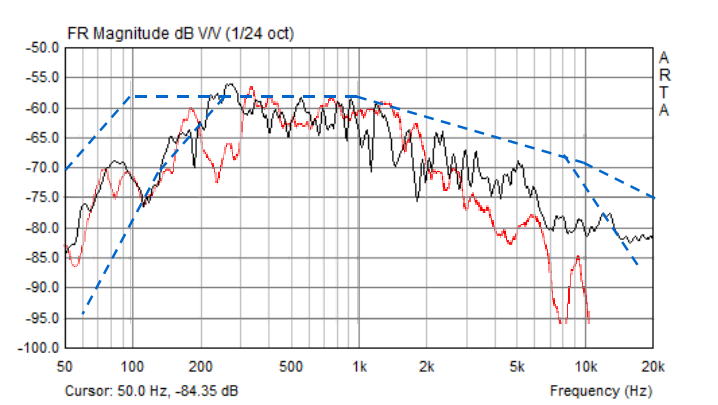 わがモノラル人生の集大成は周波数特性が陣笠(赤線)とほとんど同じ・・・