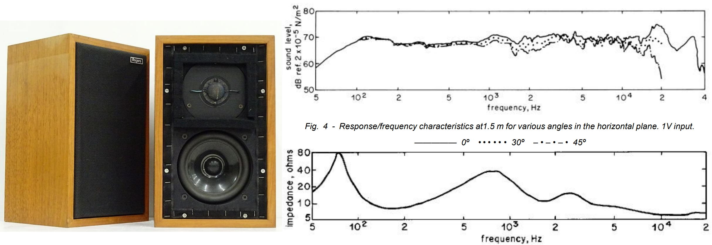 最後にJBLだが、1950年代から1980年代まで10年置きにサウンドポリシーを変えているため、現在よく目にする4312Gとかは6世代目ぐらいのサウンドポリシーになる。かつての4312Eまでは、スコーカーの扱いがかなりギミックで、公称では1.5~6kHzを受け持つのだが、ネットワークを介さないウーハーが3kHzまで被っていて、実質6kHzをピークに尖った特性を持っている。ツイーターと直接繋げてもおかしくないのだが、アンプ側のトーンコントロールでは調整しきれない中高域のキャラクターを、ユニット毎のボリュームで調整できるようにした工夫である。しかし、この機能ちゃんと使いこなしている人はほとんど居ないだろう。